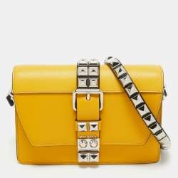 Prada Yellow/Black Leather Cahier Shoulder Bag