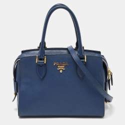 Prada Blue Saffiano Lux Leather Large Double Zip Tote