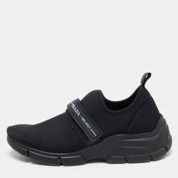 Prada Black Fabric Crystal Embellished Low Top Sneakers Size 38