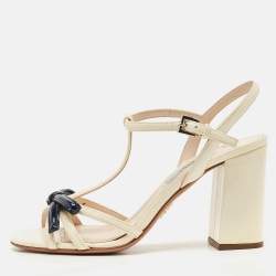 Prada Beige/Red Patent Leather Bow Ankle Strap Sandals Size 38