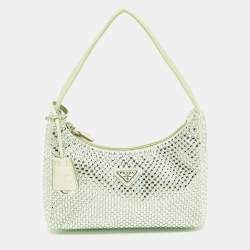 Prada Mint Green Satin Mini Crystal Studded Re-Edition 2000 Shoulder Bag