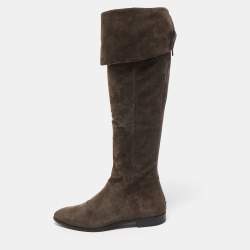 Prada Brown Suede Bow Zip Scrunch Ballet Flats Size 40