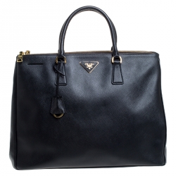 Prada Black Saffiano Lux Leather Large Double Zip Tote