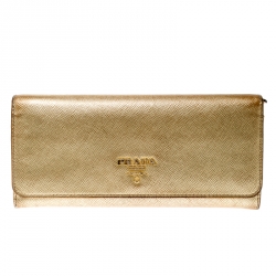 Prada Metallic Gold Saffiano Lux Leather Continental Wallet
