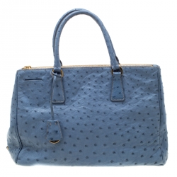 Prada Blue Saffiano Lux Leather Large Double Zip Tote