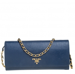 Prada Powder Blue Saffiano Metal Leather Zip Around Wallet