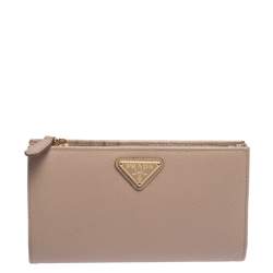 Prada Nude Beige Saffiano Leather Zip Around Wallet