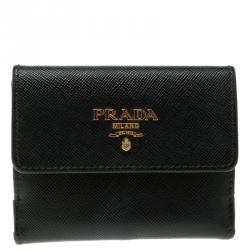 Prada Black Saffiano Lux Leather Metal Oro Chain Wallet