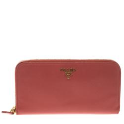 Prada Pink Saffiano Metal Leather Wallet on Chain