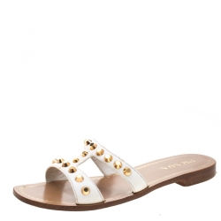 Prada Beige Patent Leather Slip On Sandals Size 38.5