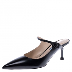 Prada Black Leather Pointed Toe Slingback Loafer Sandals Size 35.5