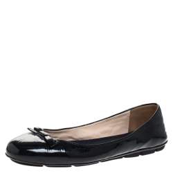 Prada Beige Leather Cap Toe Bow Detail Ballet Flats Size 39