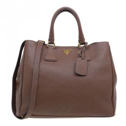 Prada Black Vitello Shine Leather East West Bauletto Bag