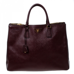 Prada Maroon Saffiano Lux Leather Wallet on Chain