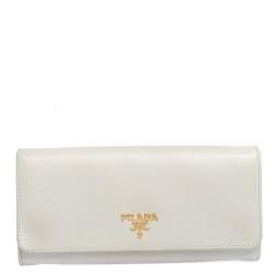 Prada Nude Saffiano Lux Leather Flap Continental Wallet