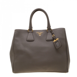 Prada Grey Saffiano Lux Leather Medium Double Zip Tote