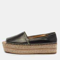 Prada Metallic Silver Leather Open Toe Platform Espadrille Flats Size 36