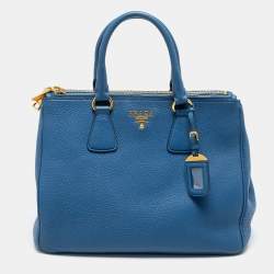 Prada Blue Vitello Daino Leather Side Pocket Tote