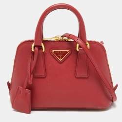 Prada Dark Red Saffiano Lux Leather Executive Double Zip Tote