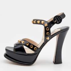 Prada Black Patent Leather Ankle-Strap Sandals Size 36.5