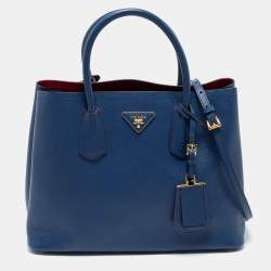 Prada Navy Blue Leather Vitello Phenix Small Tote
