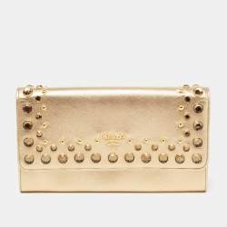 Prada Metallic Gold Woven Madras Leather Frame Satchel
