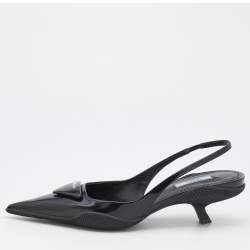 Prada Black Leather Quilted Block Heel Slide Sandals Size 36