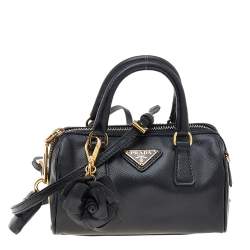 Prada Black Nylon Tessuto Metal Handle Satchel