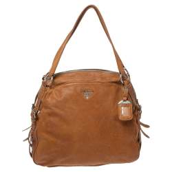 Prada Beige/Brown Canvas And Leather Canapa Logo Shoulder Bag