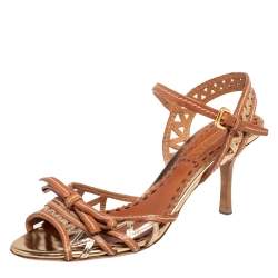 Prada Orange Patent Leather Flame Ankle Strap Sandals Size 38