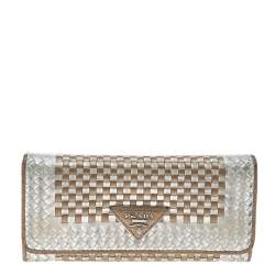 Prada Dark Brown/Black Woven Madras Leather Flap Top Handle Bag
