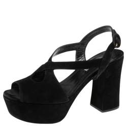 Prada Grey Leather Platform Slingback Sandals Size 40