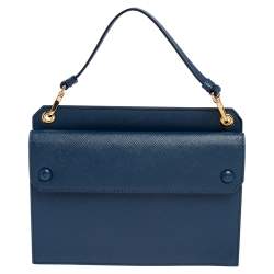Prada Blue Distressed Leather Flap Chain Shoulder Bag