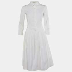 Prada Navy Blue Geometric Print Cotton Pleated Mini Dress S