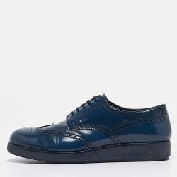 Prada Blue Patent Leather Studded Flat Slides Size 39