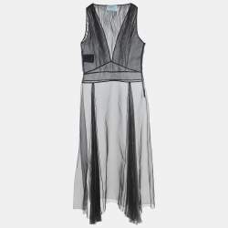 Prada Re Nylon Black Nylon Pleated Midi Skirt M
