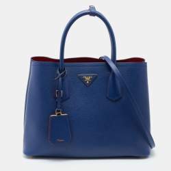 Prada Beige Glace Leather and Suede Twin Pocket Double Handle Tote