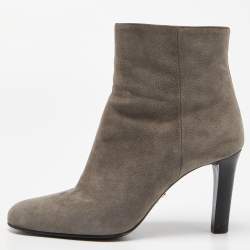Prada Black Perforated Leather Peep Toe Booties Size 38