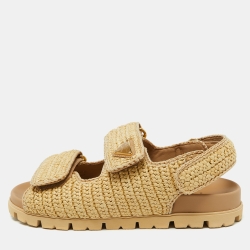 Prada Beige Woven Leather Wide Waist Belt 80CM
