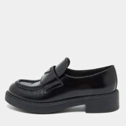 Prada Navy Blue Leather Buckle Detailing Loafers Size 45.5