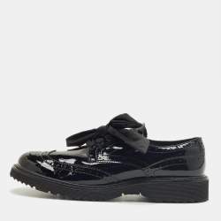 Prada Black Brushed Leather Slip On Loafers Size 35.5