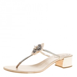 Rene Caovilla Beige Satin Floral Embellished Slingback Sandals Size 38