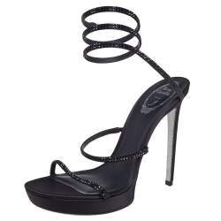 René Caovilla Orange/Black Satin Embellished Ankle Wrap Sandals Size 39.5