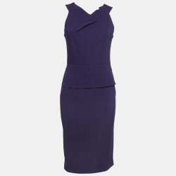 Roland Mouret Purple Crepe Ruffled Midi Dress M