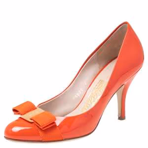 Salvatore Ferragamo Black Patent Leather And Mesh Vara Bow Block Heel Pumps Size 40.5