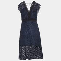 Sandro Navy Blue Cotton Lace Trim Ruffled Collar Mini Dress XS
