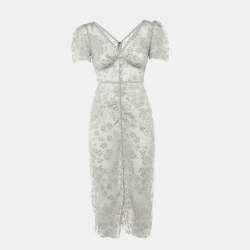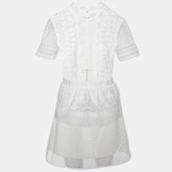 Self-Portrait White Guipure Lace Ruffled Midi Dress S