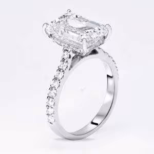 4.00 cts Emerald Cut 18k White Gold Lab Grown Diamonds Ring Size 52
