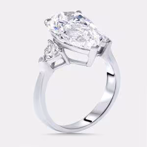 4.5 cts Triology Pear Brilliant Lab Grown Diamond 18k White Gold Ring Size 55