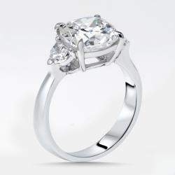 3.2 cts Cushion, Round Lab Grown Diamonds 18k White Gold Ring Size 51